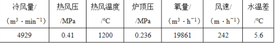 事发时,一号高炉的炉况数据如下表所示: