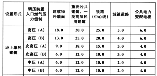 (5)调压站(中压)设置在靠近围墙处且与热处理车间(建筑耐火等级二级)相距3m。