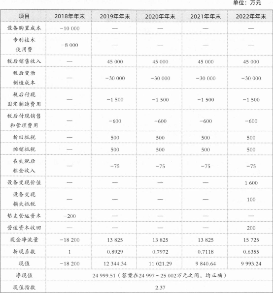 (1)厂房租金于每年年末收取,2018年厂房处于对外出租状态,因此2018年年末可以正常取得租金收入,不会因为实施该项目而丧失2018年的租金收入;如果实施该项目,甲公司将丧失2019年~2022年的租金收入,这四年间的租金收入为实施该项目的机会成本。