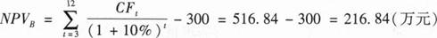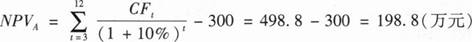 注:对应于t=3、4、5、6、7、8、9、10、11、12,CFt=180万元、140万元、100万元、60万元、20万元、20万元、60万元、100万元、140万元、180万元。