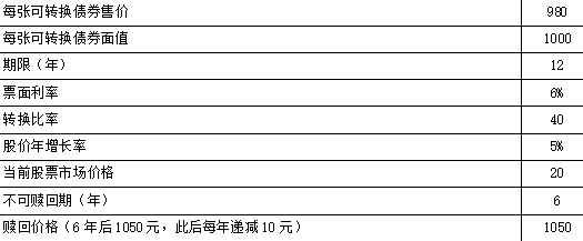 ②与普通股相比,可转换债券使得公司取得了以高于当前股价出售普通股的可能性。