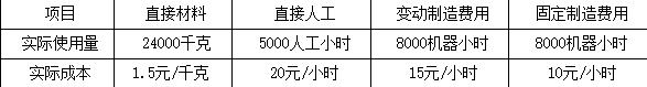 直接材料价格差异=24000×(1.5-1.6)=-2400(元)(有利差异)(1分)