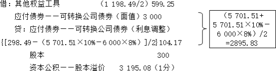应付债券——可转换公司债券(利息调整)(6000-5701.51)298.49