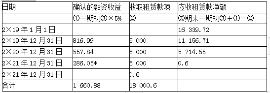 未实现融资收益摊销额=(年初租赁收款额18 000.6-年初未实现融资收益1 660.88)×5%=816.99(万元)。