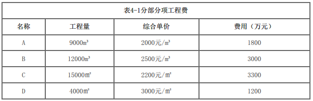1.分部分项费=1800+3000+3300+1200=9300万元