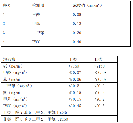 4.2 (2)符合规范要求的检测项包括:甲苯、二甲苯、TVOC。