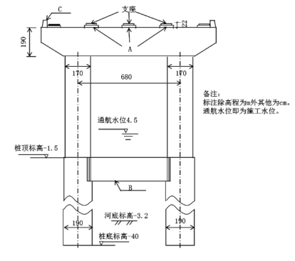 案例题 甲公司中标跨河桥梁工程,工程规划桥梁建成后河道保持通航,要求桥下净空高度不 得低于 12m。桥梁下部结构采用桩接柱的形式,桥梁下部结构横断面示意图如图 1-1 所 示。