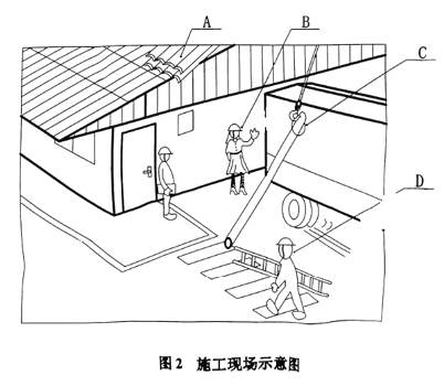 D 点:作业半径没有警戒、未设立安全警示牌、工人在吊装作业区走动容易造成机械伤害。