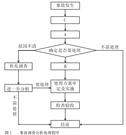 3.A:原因分析;B:制定处理方案;C:事故调查。