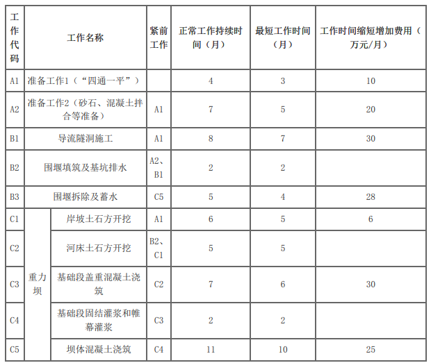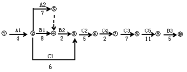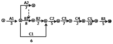(2)依据上述调整计算增加费用:A1压缩1个月增加10万元,C5压缩1个月增加25万元,合计35万元。