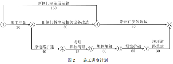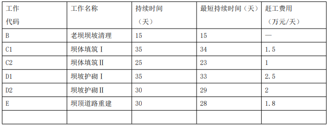 1.(1)优化后的土石坝加固后续工作的施工进度网络计划如下图: