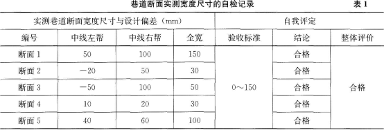 (2)巷道宽度检测断面2、3存在负偏差,不应认定为合格;