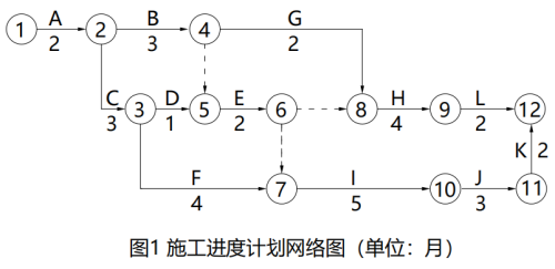 2.施工单位应在施工进度计划网络图的⑨、⑩节点之间添加一条虚箭线(或虚工序)。调整后的网络计划对工期无影响。
