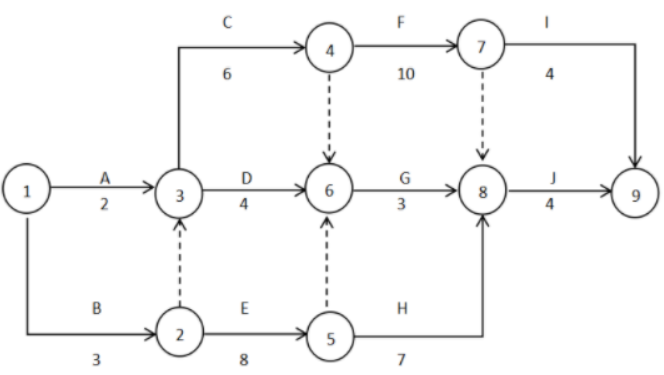某工程双代号网络计划如下图所示,工作G的自由时差和总时差分别是( )。