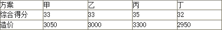 项目有甲、乙、丙、丁四个设计方案,均能满足建设目标要求,经综合评估,各方案的功能综合得分及造价如下表。根据价值系数,应选