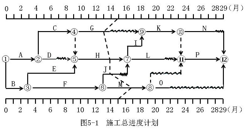 5、项目监理机构应批准的工程延期为1个月。理由:第15个月末,实际进度前锋线所示,关键工作H推迟1个月,将影响总工期1个月,其他工作延误时间均小于其总时差,不产生影响。
