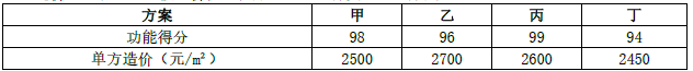 某项目,有甲、乙、丙、丁四个设计方案,通过专业人员测算和分析,四个方案功能得分和单方造价如下表所示。按照价值工程原理,应