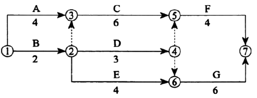 某工程双代号网络计划如下图所示,工作D的最早开始时间和最迟开始时间分别是( )。