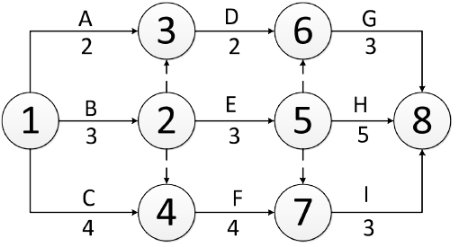 某工程网络计划如下图所示,图中工作D 的自由时差和总时差分别是( )天。