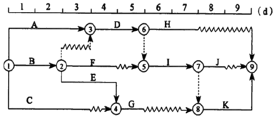 某工程双代号时标网络计划如下图所示(单位:d),关于时间参数的说法正确的有(  )。