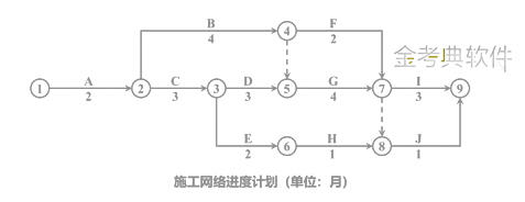 施工过程G、I流水步距KG、I=max{1,2,2,-3}个月=2个月。