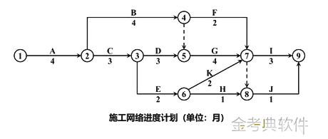3.(1)针对事件3,批准工作A工期索赔和增加工作K后的施工网络进度计划,如图所示。