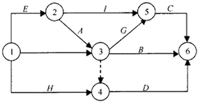 已知下列双代号网络图,工作 A 的紧后工作是( )。