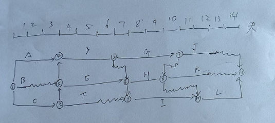 某工程双代号时标网络计划如下图所示(时间单位:天),其中工作B的总时差和自由时差分别是()
