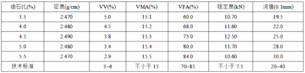 不定项选择题 某沥青混合料物理力学指标测定结果见下表,请回答以下问题。 对寒冷地区公路、交通量很少的公路,最佳沥青用量可