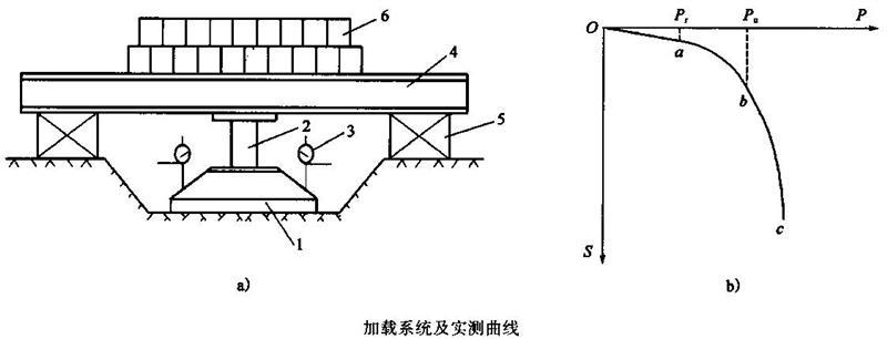 不定项选择题 采用浅层平板载荷试验检测某桥梁工程地基承载力和变形模量。已知该工程地基土为淤泥质土,泊松比为0.41,试验加载和测试装置如下图a所示,实测荷载-沉降关系曲线如下图b所示。试完成下列问题。(2)图b中,“oa”段曲线表示的是( )。