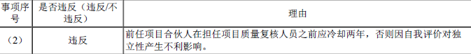 (2)项目质量复核人B注册会计师曾担任甲银行2017年度至2020年度财务报表审计项目合伙人,未参与2021年度财务报表审计。