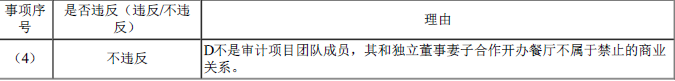 (4)2022年11月,甲公司某独立董事的妻子与XYZ公司的合伙人D合资开办了一家餐厅。已知D不是甲公司审计团队成员。