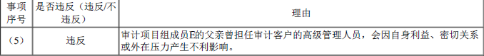 (5)审计项目组成员E的父亲曾任甲银行负责信贷业务的副行长,于2022年2月退休。E于2022年10月1日加入甲银行审计项目组。