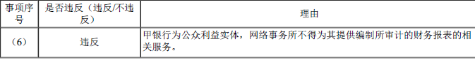(6)2022年12月,甲银行聘请XYZ公司员工为其提供编制会计记录和财务报表相关的服务,具体服务为根据试算平衡表中的信息编制财务报表。