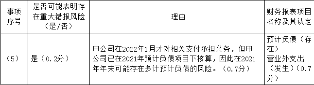 1.针对资料一第(1)至(5)项,结合资料二,假定不考虑其他条件,逐项指出资料一所述事项是否可能表明存在重大错报风险。如果认为存在,简要说明理由,并分别说明该风险主要与哪些财务报表项目的哪些认定相关。
