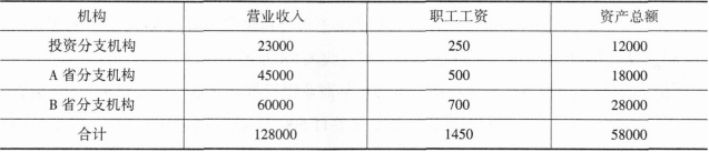 某分支机构分摊比例=0.35×(该分支机构营业收入/各分支机构营业收入之和)+0.35×(该分支机构职工薪酬/各分支机构职工薪酬之和)+0.30×(该分支机构资产总额/各分支机构资产总额之和)(2分)