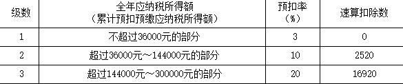 (2)将居民个人取得的全年一次性奖金,除以12个月,按其商数依照按月换算后的综合所得税率表确定适用税率和速算扣除数。