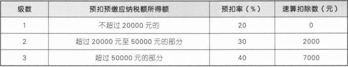 (4)讲课费收入应预扣预缴的个人所得税=30000×(1—20%)×30%一2000=5200(元)。