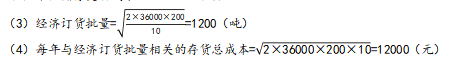 (4)计算每年与经济订货批量相关的存货总成本。