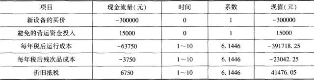 每年税后残次品成本(1~10年)=-5000×(1-25%)=-3750(元)