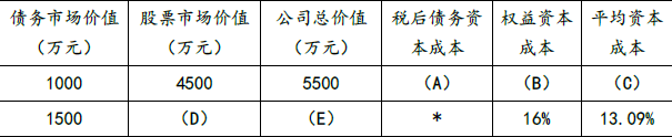 (2)债务市场价值为1000万元时,平均资本成本最低,公司总价值最大,所以债务市场价值为1000万元时的资本结构更优。