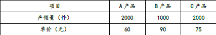 问答题 甲公司生产销售A、B、C三种产品,采用联合单位法进行本量利分析,由2件A产品、1件B产品和2件C产品构成一个联合单位。已知固定成本总额为72000元,产品产销量、单价和单位变动成本数据如下表所示。