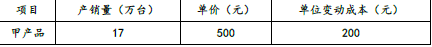 (3) 2019年安全边际量=17-16=1(万台);2019年安全边际率=1/17×100%=5.88%;安全边际率小于10%,经营安全程度为危险。