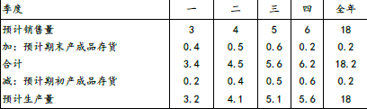 (5) 2020年生产预算表 单位:万台