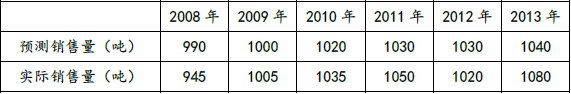 (1)假设样本期为3期,使用移动平均法预测2014年H产品的销售量。