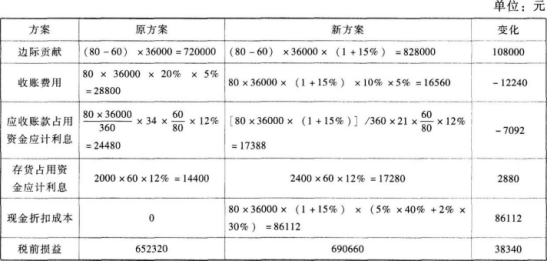 采用该政策后,预计销售量会增加15%,40%的顾客会在10天内付款,30%的顾客会在20天内付款,20%的顾客会在30天内付款,另外10%的顾客平均在信用期满后20天付款,逾期应收账款的收回需要支出占逾期账款5%的收账费用。
