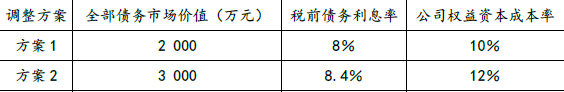(3)方案1公司权益市场价值=(4 000-2 000×8%)×(1-25%)/10%=28 800(万元)
