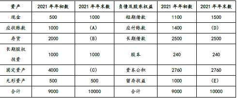 ②A=1500;B=2000,C=4000;D=1000;E=2000。