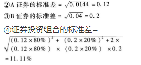 B证券的预期收益率为18%,方差是0.04,投资比重为20%;