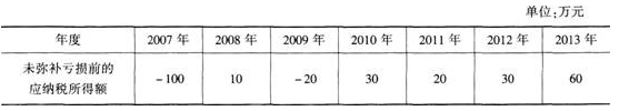 下表为经税务机关审定的某国有企业7年的应纳税所得额的情况。假定该企业一直执行5年亏损弥补规定,该企业2013年应缴纳的企业所得税为( )万元。